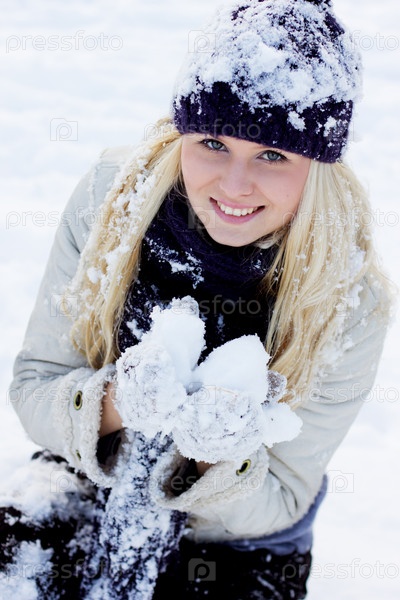 Красивая девушка со снежками