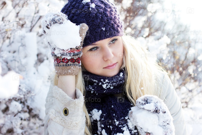 Красивая девушка со снежками