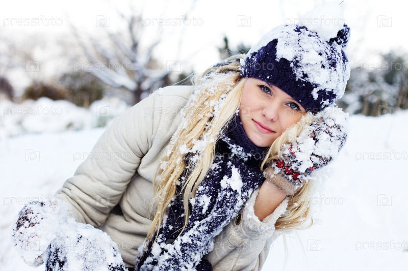 Красивая девушка играет в снежки