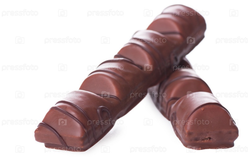 Шоколадные батончики на белом фоне