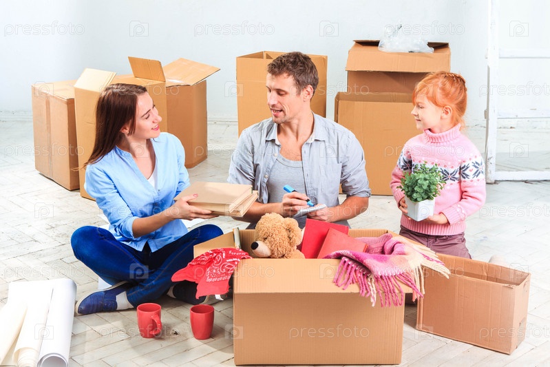 Счастливая семья в новой квартире