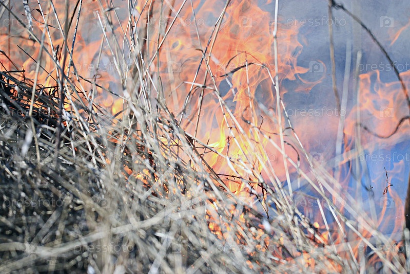 Горящая сухая трава