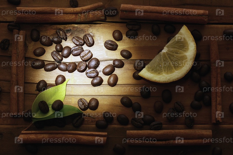 Кофейные зерна и лимон