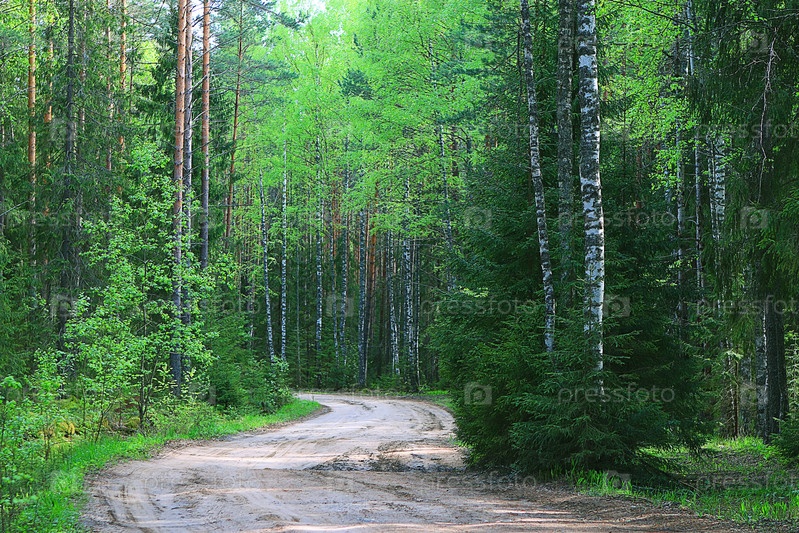 Летом еловый лесной пейзаж