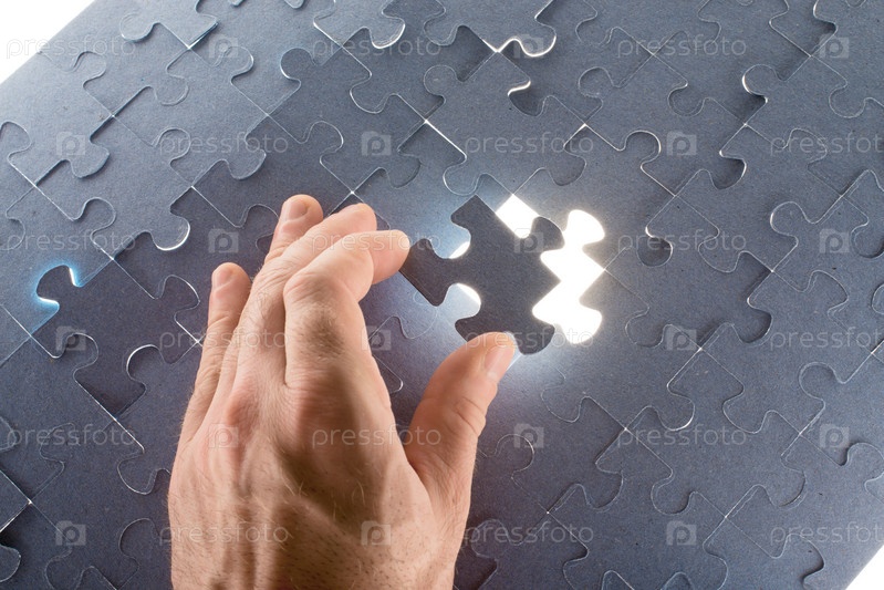 Мужчина держит кусок головоломки