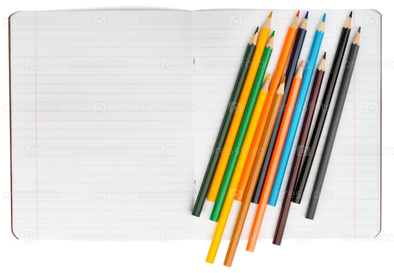 Открыть Блокнот с набор цветных карандашей