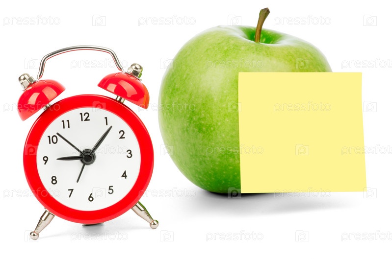 Яблоко с будильником и стикер