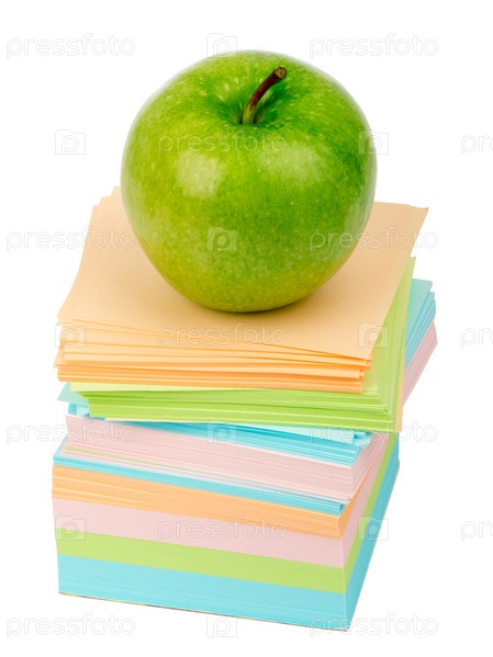 Свежий зеленый яблоко на кучу наклеек