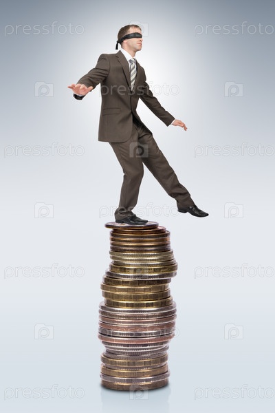 Бизнесмен, ходьбы от края Куча монет
