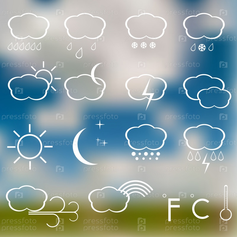 Иконки погоды на размытым фоном