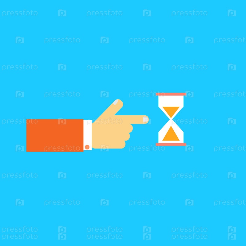Мужская рука, указывая на Песочные часы. Векторные иллюстрации
