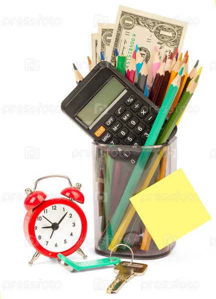 Будильник с наличными и калькулятор