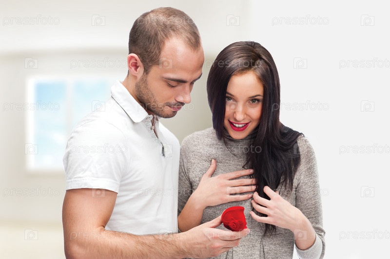 Молодой человек делает предложение своей девушке в квартире
