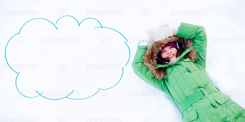 Молодая женщина, лежит на снегу и смотрит на небо