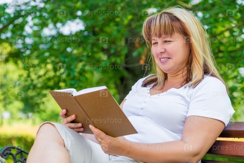 Женщина читает книжку в парке