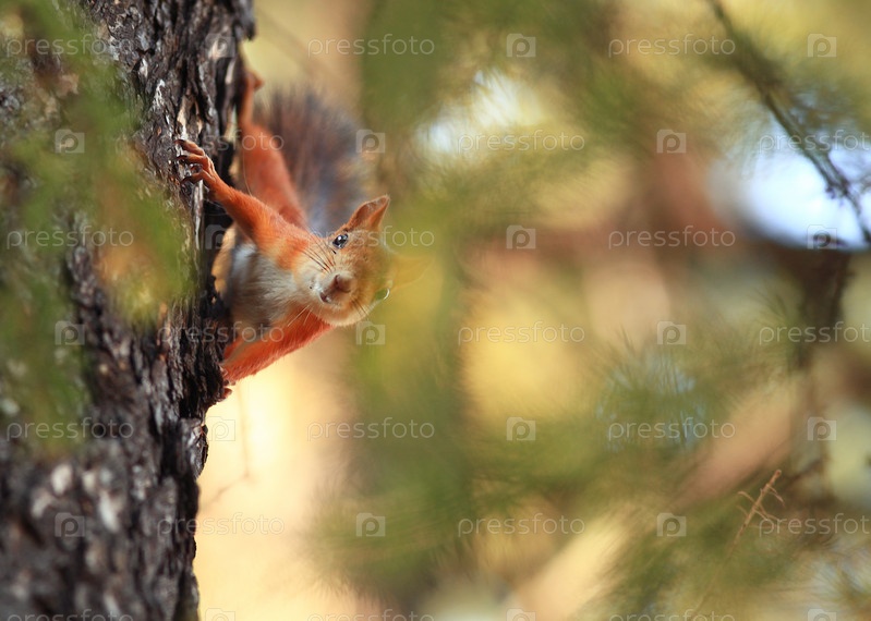 Белка на дереве в крупный парк