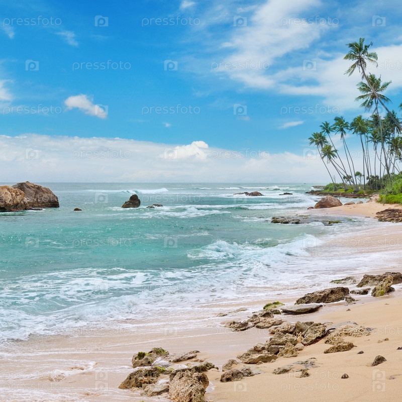 Живописный пляж и голубое небо