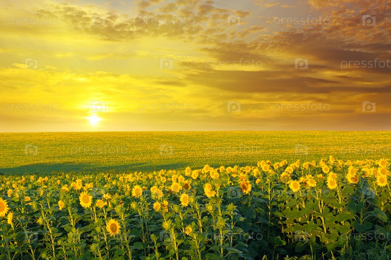 Поле подсолнухов и восход солнца