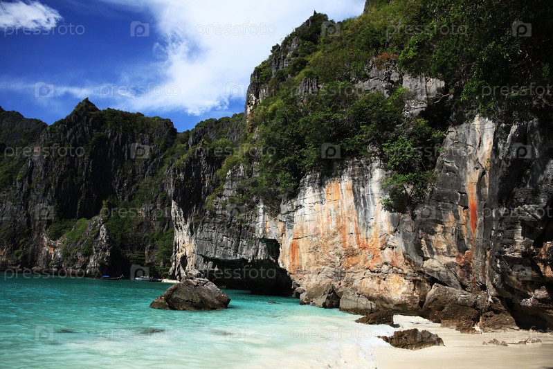 Скалистый горный ландшафт острова в море