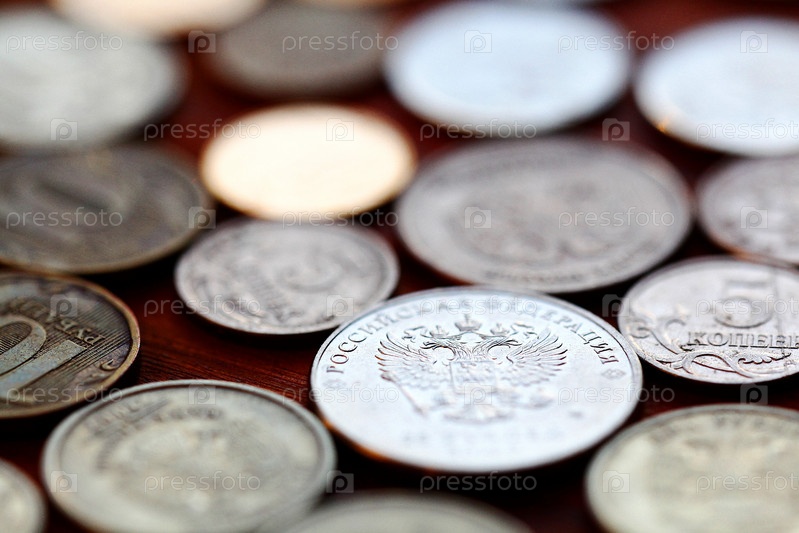 Россыпь монет рублей