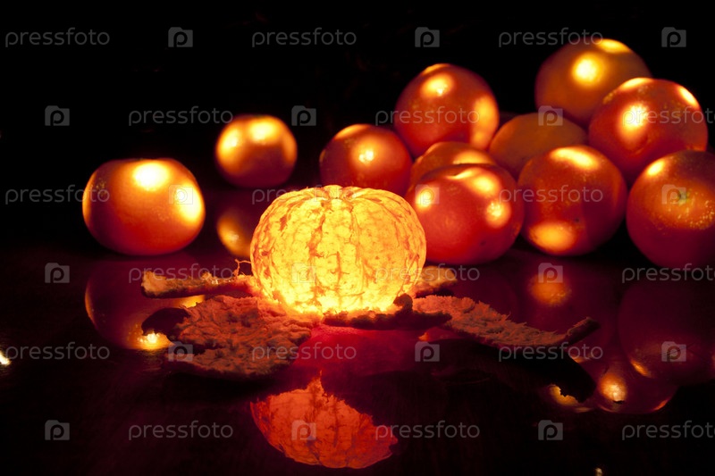 Светящийся мандарин, на темном фоне