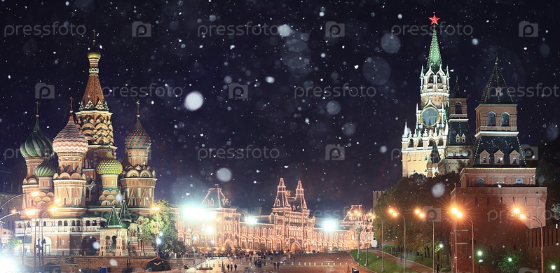Московский Кремль, российский Первый снег пейзаж
