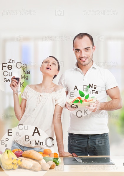 Молодая пара на кухне пьет вино и наслаждается процессом приготовления пищи