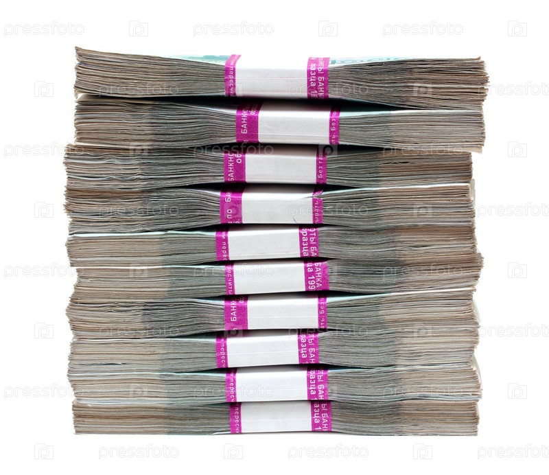 Пачки денег. Российские рубли