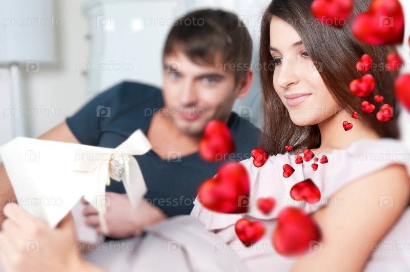Молодой человек дарит девушке подарок в день святого Валентина