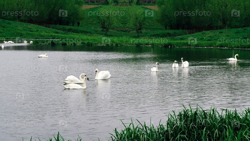 Белые лебеди в пруду