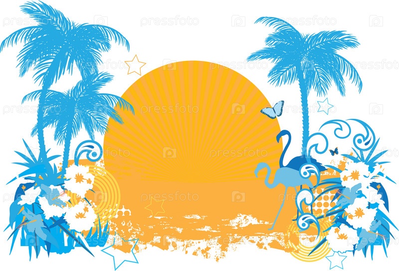 Абстракционное изображение. Солнце, пальмы и животные