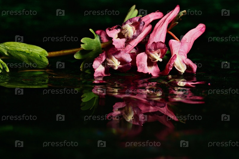 Красочные цветы на черном фоне отражения