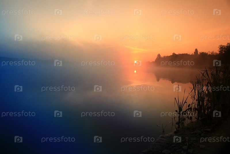 Рассвет на озере туман пейзаж природа
