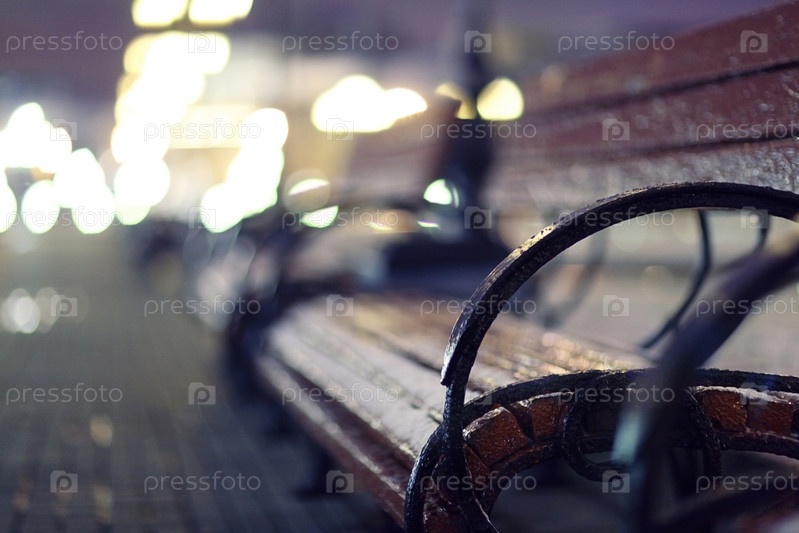 Ночь, осенняя скамейка города