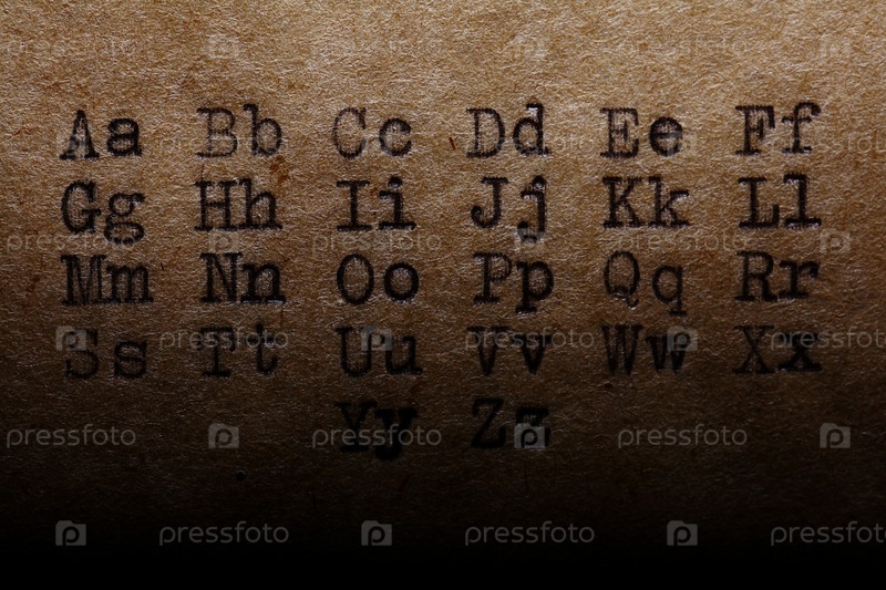 Латинский алфавит, шрифт напечатан на пишущей машинке