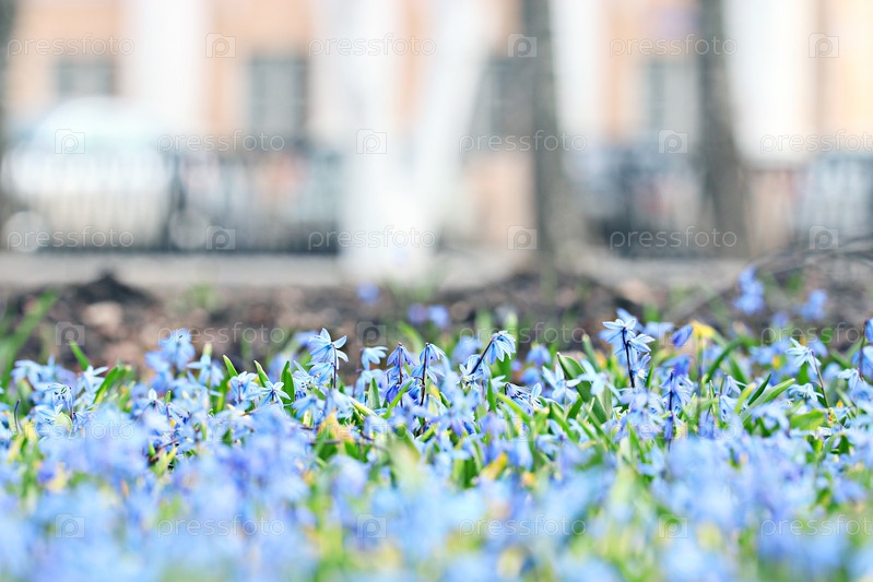 Маленькие голубые цветки в городе
