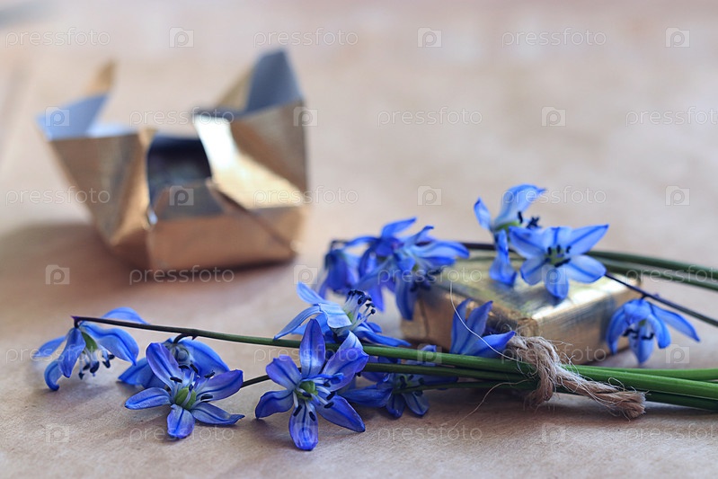 Голубые цветки и шоколад