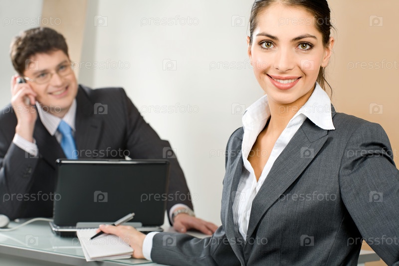 Портрет молодой деловой женщины, смотрящей на камеру в офисе