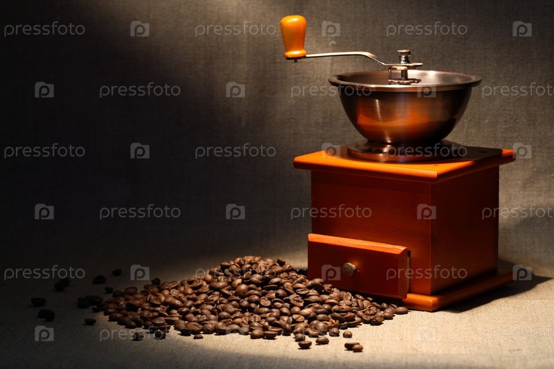 Ручная винтажная кофемолка и зерна кофе