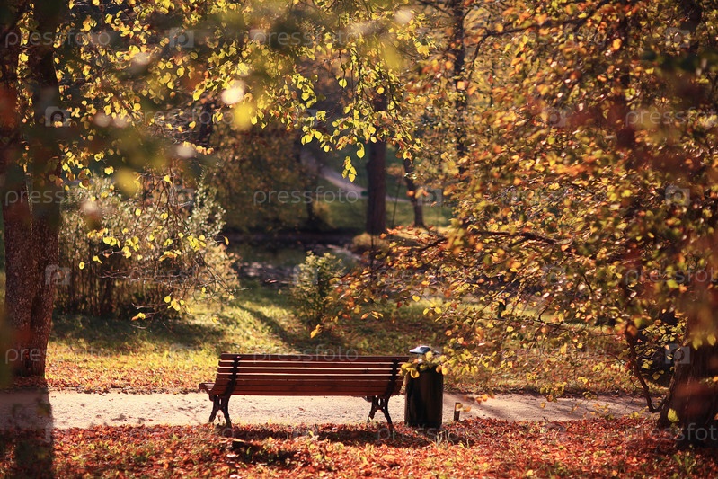 Садовая скамейка в Осенний парк пейзаж