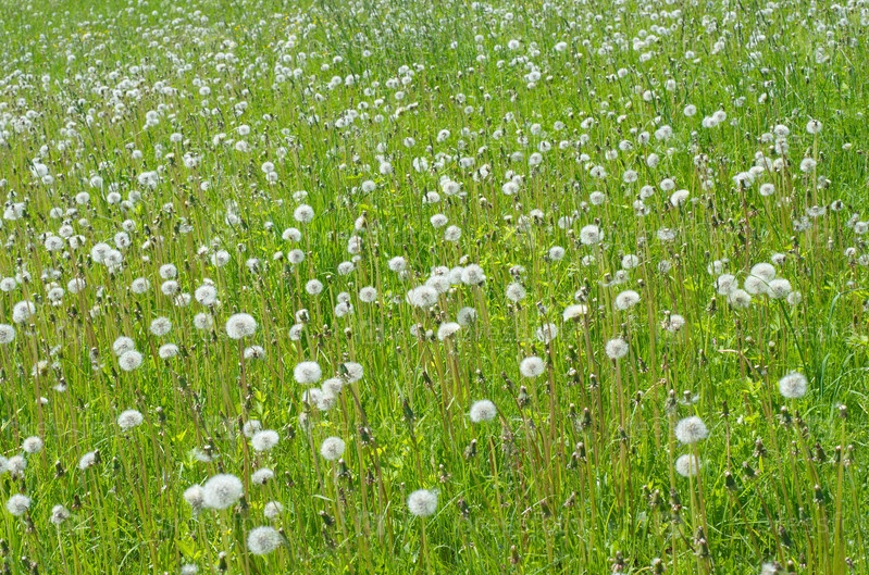Поле белых одуванчиков