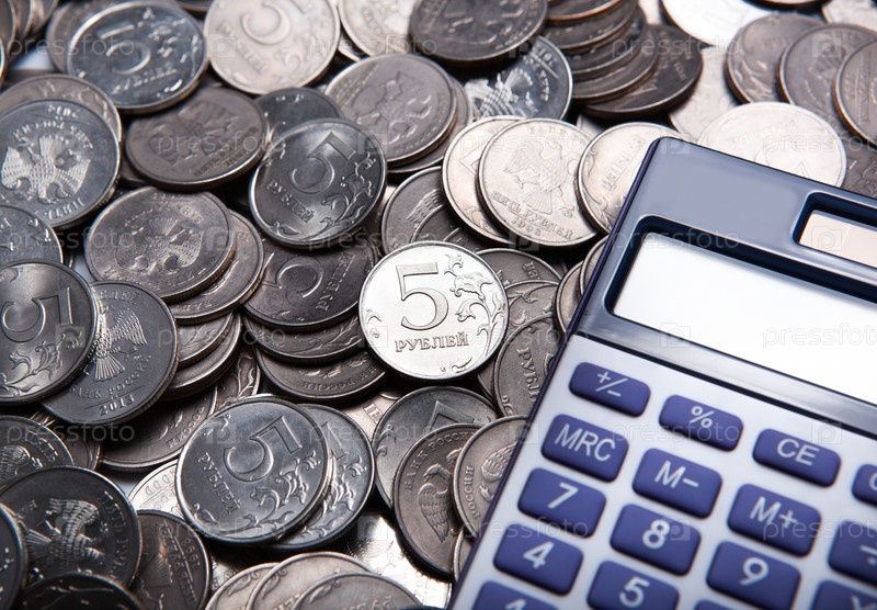 Деньги в виде монет с калькулятор