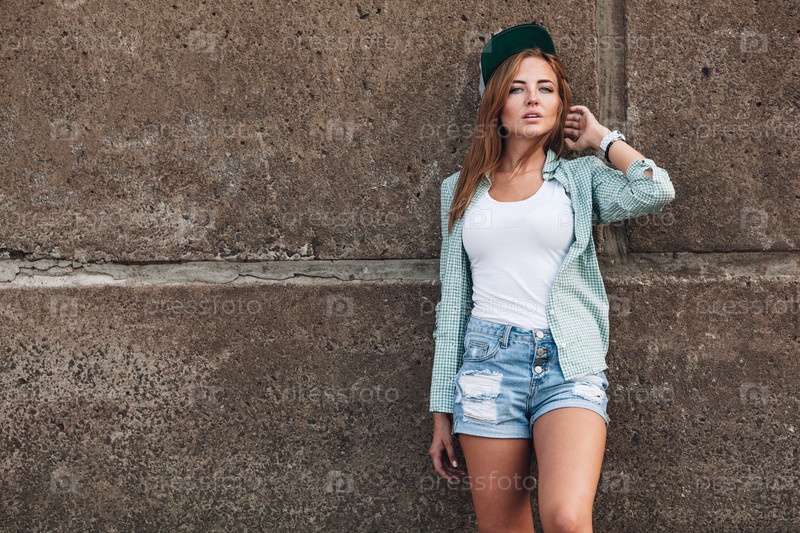 Девушка возле бетонной стены