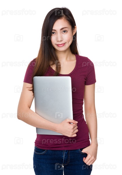 Азиатская женщина с портативным компьютером