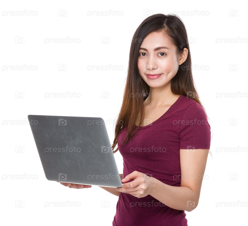 Азиатская женщина с портативным компьютером