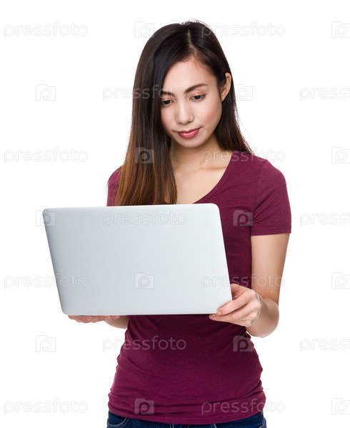 Азиатская женщина с портативным компьютером