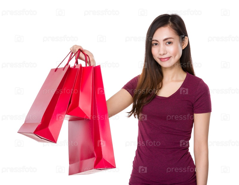 Азиатская молодая женщина с покупками