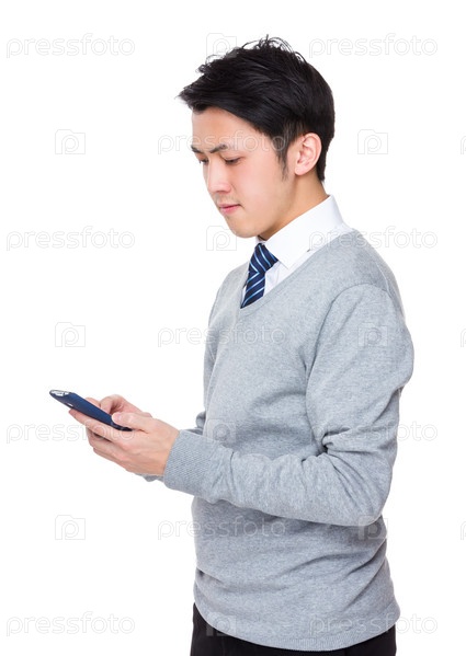 Бизнесмен, читает с сотового телефона