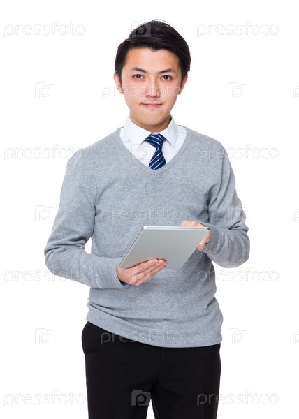 Азиатский молодой бизнесмен с ноутбуком
