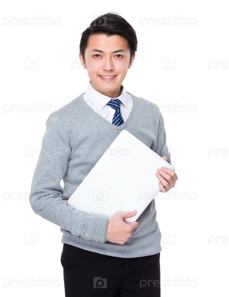 Азиатский молодой бизнесмен с ноутбуком